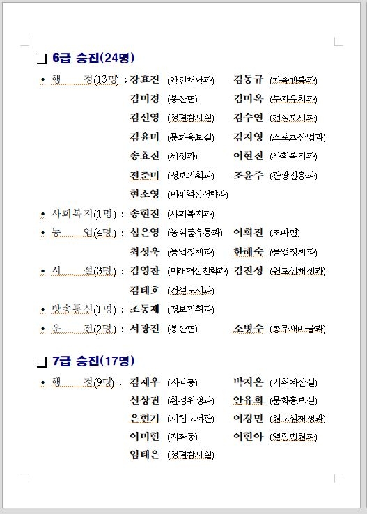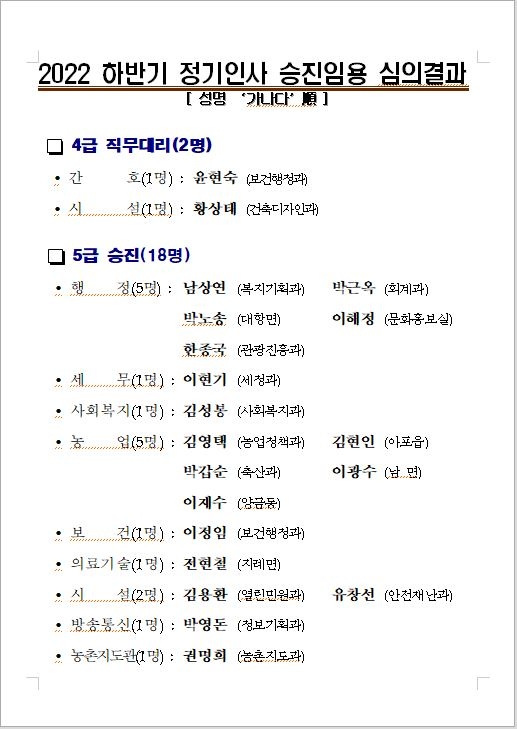 2022 하반기 정기인사 승진임용 심의결과