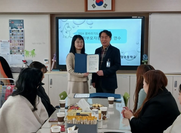 영주중앙초등학교(교장 최영일)에서는 3월 14일(화) 10시에 학교 꿈바라기 도서관에서 학부모 자원봉사자에게 위촉장을 수여했다.