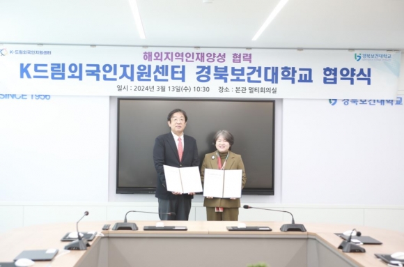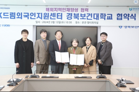 경북보건대학교와 경상북도 K-드림외국인지원센터는 13일(수) 경북보건대학교 대학 본부 멀티회의실에서 외국인 근로자의 권익향상과 안정적 고용환경 조성을 위해 업무협약을 체결했다.