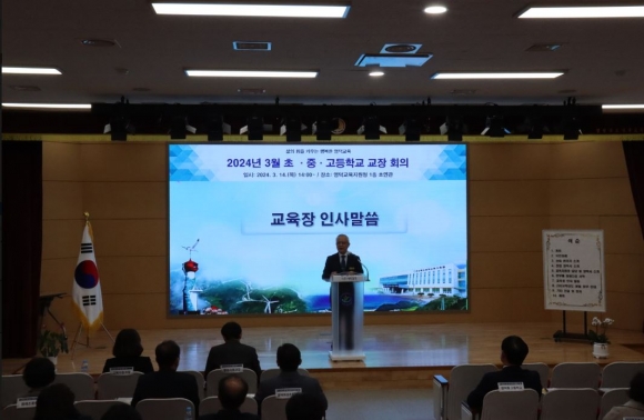 □ 관리자 회의를 주관한 윤인한 교육장은 “우리청은 2024년 미래교육지구를 새롭게 시작하게 되었으며 이는 영덕교육이 미래를 지향함을 뜻합니다. 2024학년도 행복 영덕교육을 위하여 모두 따뜻한 리더로서 직원을 격려하고 지원하는 관리자가 되어 영덕교육의 미래를 위해 함께 나서자.”고 당부하였다.