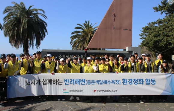 공무원연금공단(이사장 김동극) 노사는 15일 서귀포에 위치한 중문색달해변에서 공동 환경정화 활동을 실시하였다.