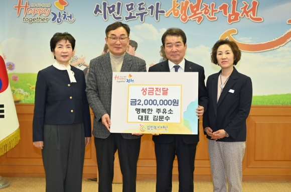 김천복지재단(이사장 김충섭)은 지난 19일 김천시 덕곡동에 소재한 행복한 주유소 김문수 대표로부터 성금 200만 원을 전달받았다고 밝혔다.