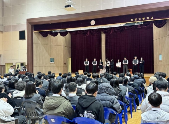 청양고등학교(교장 김경수)는 학생회 주관으로 ‘환영해, 즐거운 고딩생활’이라는 주제로 2024년 3월 18일 1교시 자율활동 시간에 신입생 환영회를 열었다.