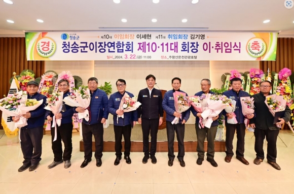 윤경희 청송군수는 “그동안 지역사회 발전을 위해 헌신하신 이세현 이장연합회장님과 임원들께 감사드린다.” 며 “청송군이장연합회를 중심으로 우리 청송군이 하나로 단결하여 지역 사회가 화합되고 단결되길 바란다.”고 전했다.