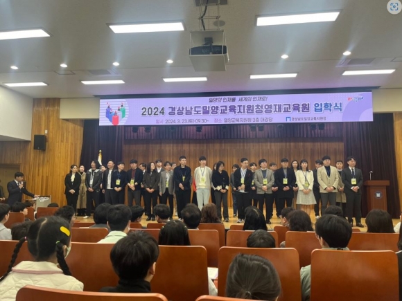 경상남도밀양교육지원청영재교육원(원장 김정희)은 3월 23일(토) 9시 30분 밀양교육지원청 3층 대강당에서 영재교육원 신입생과 강사, 학부모 등 200여 명이 참석한 가운데 2024학년도 영재교육원 20기 입학식을 개최하였다.