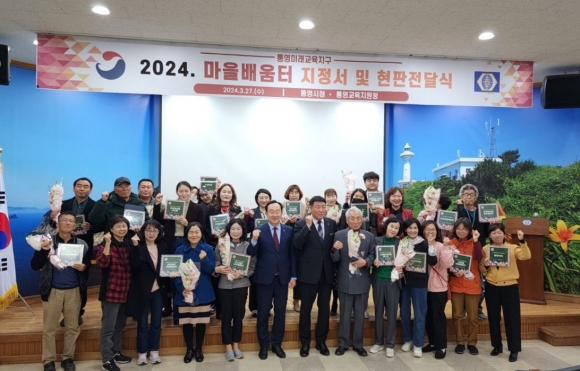 통영교육지원청(교육장 김재수)은 3월 27일(수) 통영교육지원청 온누리홀에서 통빛채(통영 빛깔 채움) 통영미래교육지구에서 선정한 마을배움터 20곳을 대상으로 지정서 및 현판 수여식을 진행했다.