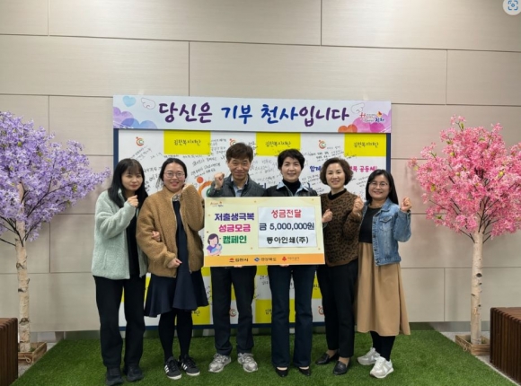 김경희 복지환경국장은“현재 저출생 극복을 위해 행정력을 집중하고 있는 가운데, 단비와 같은 성금을 전달해주신 동아인쇄(주)에 감사드린다. 전달해주신 성금은 우리 김천의 미래를 위한 소중한 재원으로 사용해 아이 낳고 기르기 좋은 도시가 될 수 있도록 최선을 다하겠다.”라고 말했다.
