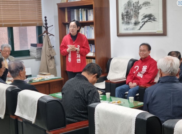 경산시 국민의힘 국회의원 조지연 후보는 2일, 윤재옥 국민의힘 원내대표와 함께 대한노인회 경산시지회를 방문했다고 밝혔다.