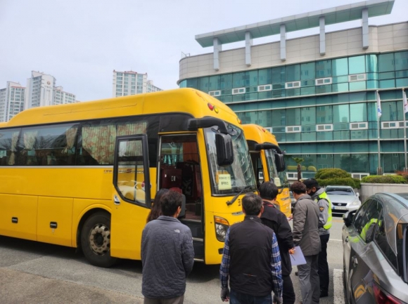 경상남도통영교육지원청(교육장 김재수)은 4월 2일(화)부터 4월 4일(목) 3일간 통영교육지원청 주차장 및 미수동 해양공원 주차장에서 어린이통학버스 10대(2개 유치원, 2개 초등학교, 3개 학원)를 대상으로 관계기관 합동점검을 실시하였다.