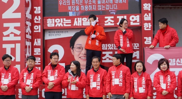 유영하 후보(대구 달서갑)는 “조지연 후보는 윤석열 대통령께서 가장 아끼는 참모라며 힘있는 젊은일꾼”,“힘이 세면 예산 많이 가져올 것이다”라며 “많이 가져와서 경산 팍팍 밀어줄 것...젊은일꾼 조지연 믿어달라”며 조지연 후보 지지를 호소했다.