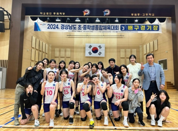 학교법인 명덕육영회(이사장 윤정숙) 산하 함안여자중학교(교장 이동률)는 5일(금)~6일(토)간 통영 동원고등학교에서 열린 경남 초·중학생 종합 체육대회 배구 부문 여중 군부에서 우승하는 영광을 안았다.