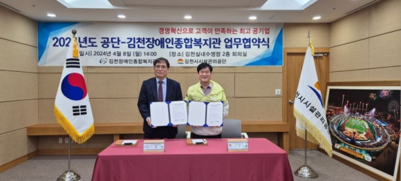 김천시시설관리공단(이사장 김재광)은 4월 8일 김천시장애인종합복지관(관장 안민)과 업무협약을 체결하였다고 밝혔다.