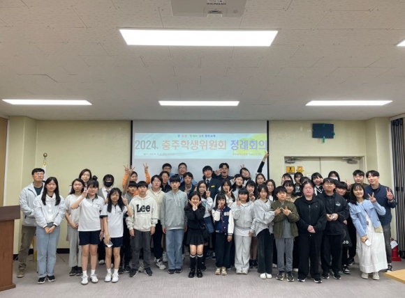 충주교육지원청(교육장 이정훈)은 지난 9일, 충주시청소년수련원에서 초·중·고등학교 학생 약 50명을 대상으로 ‘2024. 충주학생위원회 정례회의’를 진행했다.