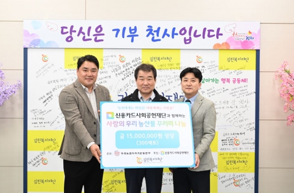 김천복지재단(이사장 김충섭)은 지난 12일 (사)우리농업지키기운동본부로부터 농산물꾸러미 300박스(1,500만원 상당)를 전달받았다고 밝혔다.