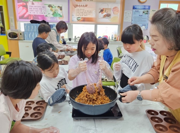 ‘전통과자 만들기·전통놀이’시간은 학생들이 전통문화를 체험하며 예로부터 전해온 삶의 정취를 느끼는 의미 있는 시간이었다.