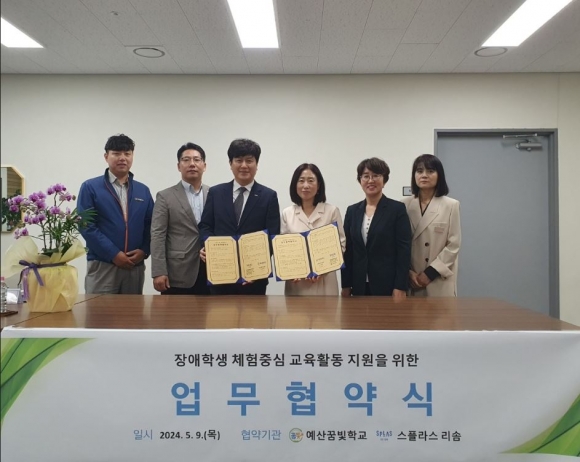 스플라스 리솜과 예산꿈빛학교(교장 김성희)는 지난 9일 예산꿈빛학교에서 장애학생 체험중심 교육활동 제공을 위한 업무 협약 연장을 체결했다.작년 협약을 통해 예산꿈빛학교 학생들이 스플라스 리솜에서 현장중심 교육활동 제공과 생존 수영 교육을 받았으며, 이러한 성과를 이어가기 위해 양 기관이 모여 협력을 재확인했다. 이번 협약 연장은 장애학생들이 지역사회와 소통하며 자신감을 키울 수 있는 기회를 확대하는데 기여할 것으로 기대된다.