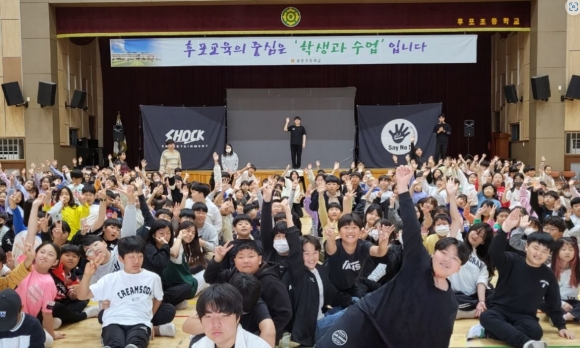 후포초등학교(교장 이은주)는 5월 16일 강당(등기관)에서 전교생 270여명(병설유치원 포함)이 참여한 가운데 흡연예방을 위한 홀로그램 공연을 관람하였다.