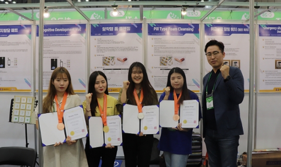[밝은미래신문=뉴스팀]경일대학교(총장 정현태) LINC+사업단은 한국여성발명협회, 한국발명진흥회가 주관하는 ‘2019 대한민국 세계여성발명대회에 재학생 4명이 참가하여 금상, 은상, 동상, 특별상을 각각 수상해 전원 입상하는 성과를 거두었다. 지난 6월 20일부터 6월 23일까지 일산 킨텍스(KINTEX)에서 열린 세계여성발명대회에는 29개국에서 350여점의 발명품이 출품되었으며, 경일대는 특허출원 캠프를 통해 선발된 4명의 학생이 최종 참가하여 금상, 은상, 동상 2건과 특별상 1건을 수상하는 영예를 안았다.