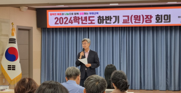 부여교육지원청(교육장 김영배)은 3일(화) 부여교육지원청 대회의실에서 부여 관내 유, 초, 중, 고, 교장 및 원장 39명을 대상으로 하반기 교(원)장 회의를 개최하였다.