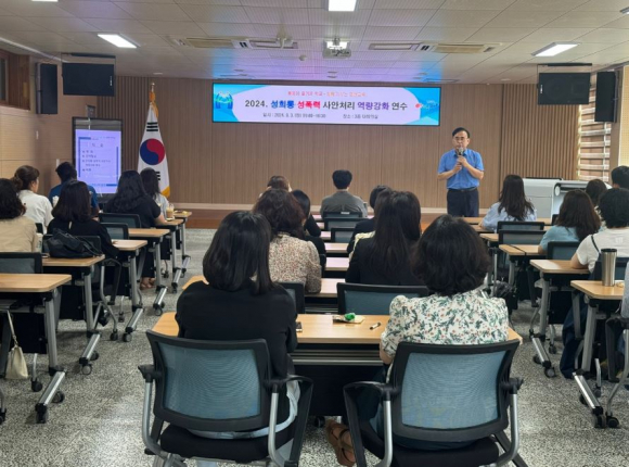 합천교육지원청(교육장 깁갑진)은 9월 3일(화) 합천교육지원청 대회의실에서 성희롱・성폭력 예방을 위한 학교의 역할 및 피해자 피해 회복을 위해 학교 관리자, 업무담당자가 추진해야 할 업무를 주제로 “사안 처리 중심의 성희롱・성폭력 역량 강화 연수”를 실시했다.