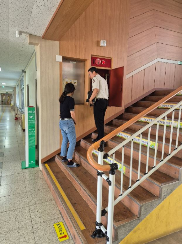 소방 점검뿐만 아니라 방화 스크린 수동 작동법과 옥내소화전 보관 방법 등 소방 안전 컨설팅도 병행하며 학교 소방시설 관리의 중요성을 강조했다.