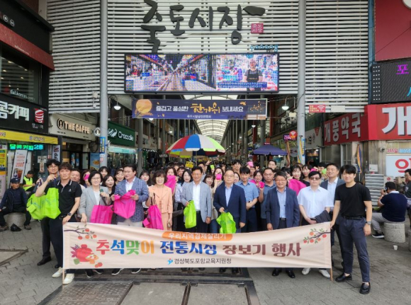 ☐ 포항교육지원청(교육장 최한용) 직원들은 추석 명절을 앞두고 9. 9.(월)에 포항 관내 여러 전통시장(죽도시장 등)을 방문해 전통시장을 활성화하기 위한 장보기 행사를 실시하였다.