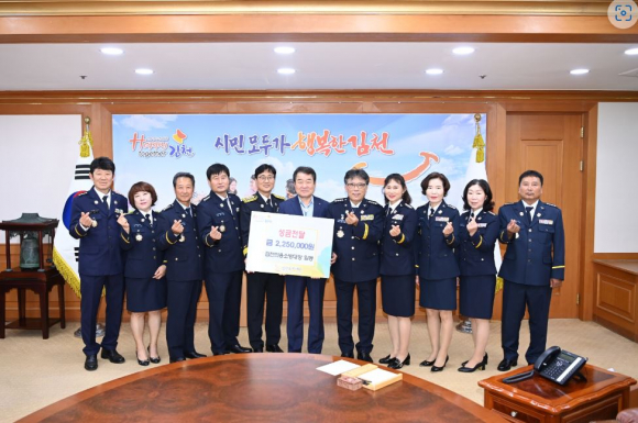 김천 의용소방대장 일동(남성연합회장 우석수, 여성연합회장 이미숙)은 9월 10일 주변의 어려운 이웃들을 돕기 위한 성금 225만 원을 김천시에 전달했다.